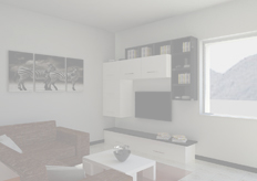 I colori predominanti dell'appartamento sono il bianco e il grigio dei controsoffitti e del camino; per compensare l'aspetto un po' freddo dei colori utilizzati si è