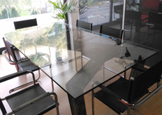 Per la sala riunioni dello studio di proprietà, si è scelto di realizzare un tavolo di design, su misura in ferro e vetro.