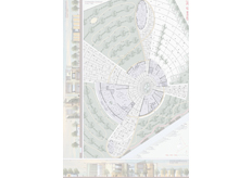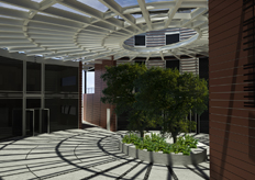 I vari percorsi sono incentrati e quindi portano al centro di una piazza coperta con travi in ferro e vetro, che funge da 'agorà' della città della musica. Sulla