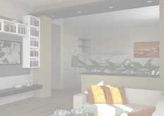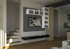 la modifica strutturale la veletta funge da illuminazione, per la zona soggiorno e la zona cucina attraverso faretti incassati e striscie led su entrambi i lati.
