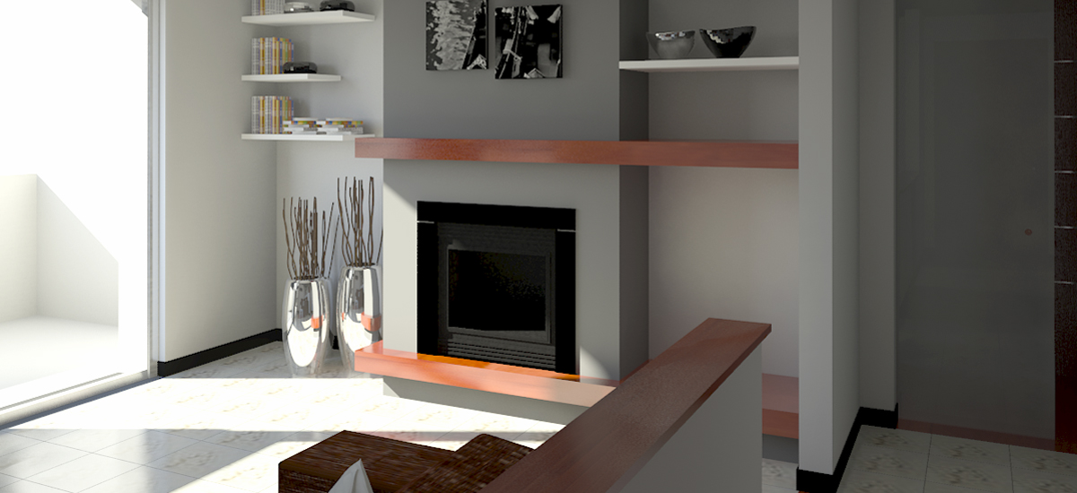 scelto di utilizzare alcuni elementi in legno colore 'ciliego', come le mensole del camino, la mensola del muretto della zona giorno, le porte e gli inserti in legno