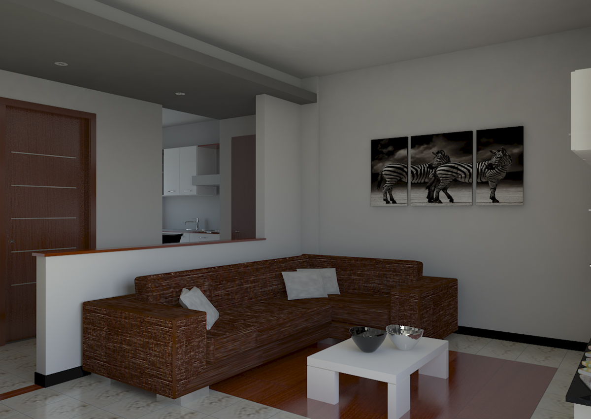 Per migliorare la luminosità del corridoio è stata eliminata la parete del soggiorno, in modo da ottenere uno spazio continuo tra gli ambienti della zona giorno e