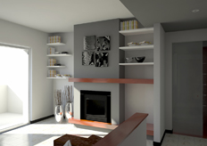 I colori predominanti dell'appartamento sono il bianco e il grigio dei controsoffitti e del camino; per compensare l'aspetto un po' freddo dei colori utilizzati si è