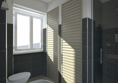 (colore betulla), e utilizzare colori caldi non troppo invadenti, come l'ocra, per gli elementi che visivamente e fisicamente rientrano nello spazio come la parete