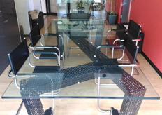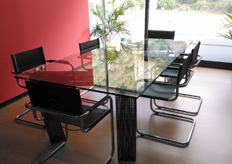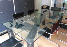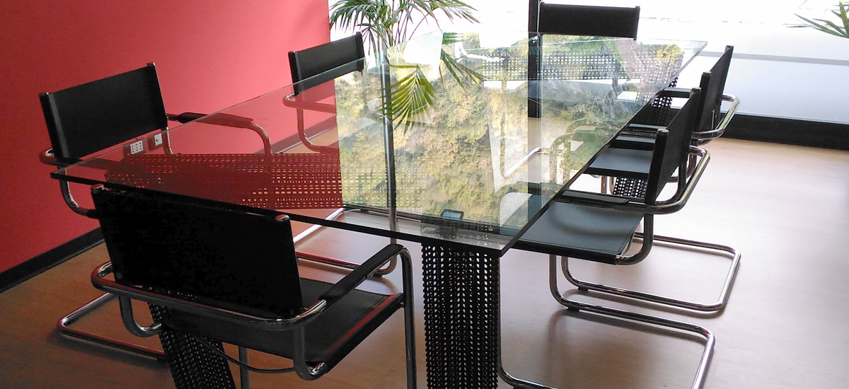 Per la sala riunioni dello studio di proprietà, si è scelto di realizzare un tavolo di design, su misura in ferro e vetro.